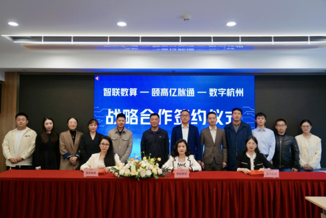 10月31日上午,杭州城市大脑技术与服务有限公司(以下简称“数字杭州”)、杭州智联数算科技有限公司(以下简称“智联数算”)与颐高亿脉通科技有限公司战略合作签约仪式在“中国数谷·临平”——杭州数据要素运营中心举行。颐高集团董事长翁南道、颐高集团副总裁王昱鑫、颐高集团亿脉通科技总裁肖庆、智联数算董事长、数字杭州总经理张旭、智联数算科技副总经理陈一丹、邵伟出席。